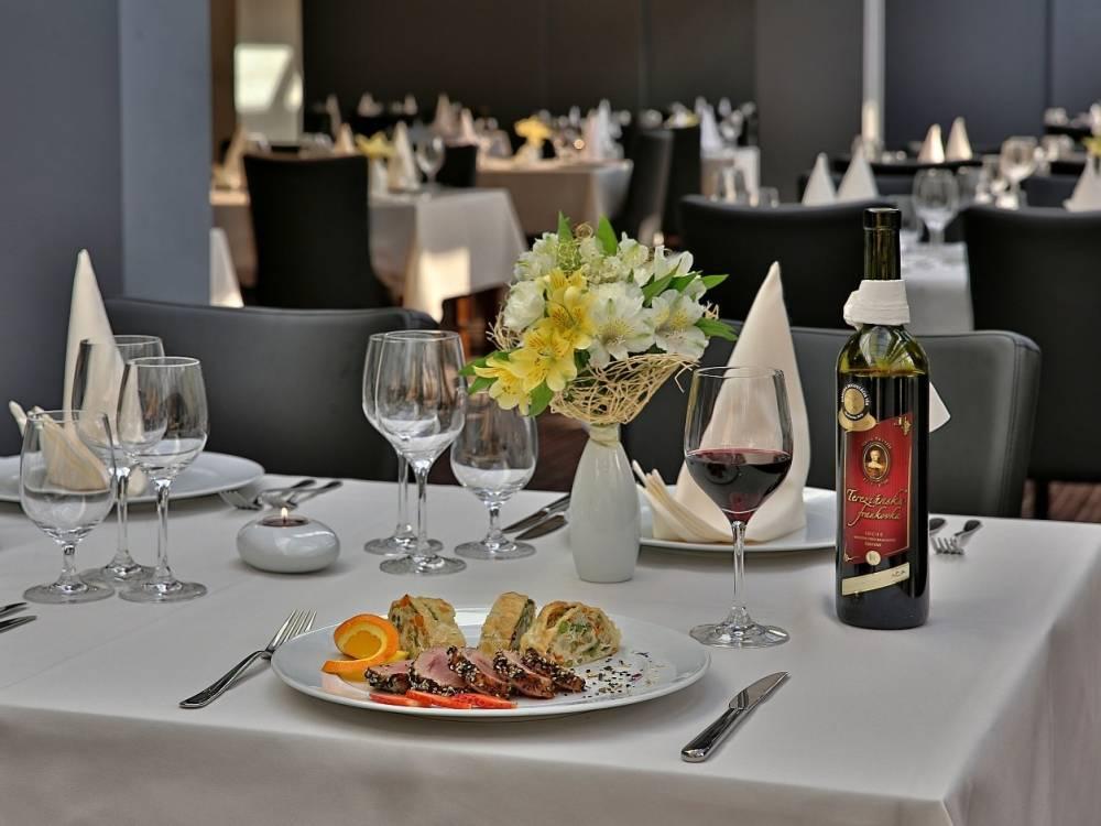Hotelová reštaurácia ponúka jedlá modernej európskej gastronómie pripravované z kvalitných surovín. Raňajky, obedy a večere sa podávajú formou bufetu. Lobby bar Vám ponúka príjemné posedenie pri dobrej káve, pestrom výbere alkoholických a nealkoholických nápojov.
