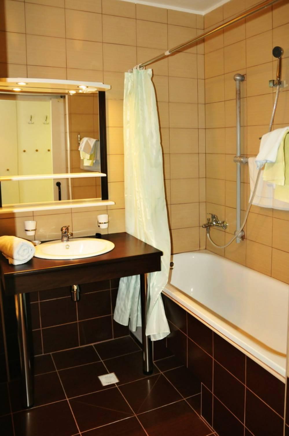 Comfort: balkón s kresielkami a stolíkom (od jari do jesene), kúpeľňa so sprchou alebo vaňou (20 izieb na 1. a 2. posch. má bezbariérové "vozičkárske" sprchy), sušič vlasov, WC, trezor, WiFi, Sat TV s plochou obrazovkou, telefón, ventilátor (v lete), chladnička (na izbách 2XL a apartmáne zadarmo, na izbe Comfort za poplatok)