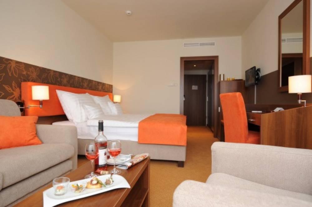 V klimatizovanom hoteli so 196 izbami sa nachádza 162 priestranných, dvojlôžkových izieb zariadených v teplých farbách, z ktorých 2x 23 je prepojiteľných rodinných izieb a izieb je vhodných pre hostí s postihnutým pohybovým systémom. Prekvapenie máme aj pre ľudí túžiacich po intímnej relaxácii: časť 28 apartmánov a 6 veľkých apartmánov poskytujúcich výnimočný zážitok je vybavená s jacuzzi a/alebo kozubom.