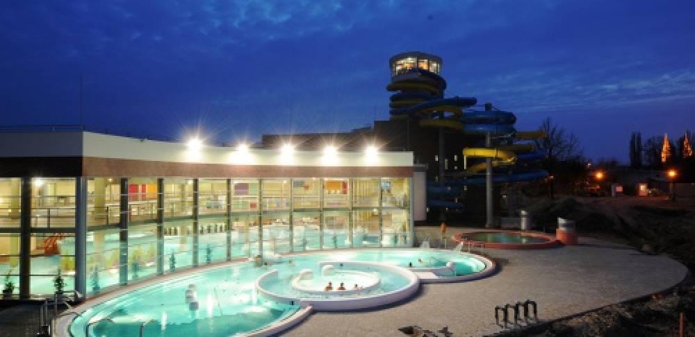 Jeden z najväčších kúpeľných komplexov v Maďarsku Napfényfürdő Aquapolis Szeged Wellness-, Gyógy- és Élményfürdő (Wellnessové, liečebné kúpele a aquapark) sú prístupné cez uzavretú a vykurovateľnú chodbu z hotela. O bezstarostnú zábavu sa starajú vodná kĺzačka s najdlhšou dobou ročnej prevádzky v Európe, (272 m dlhá kĺzačka anakonda vychádzajúca z 30 m vysokej veže a kĺzačka kamikadze dlhá 223 metrov), ďalších 7 kĺzačiek vychádzajúcich z podlaží galérií a úsek rodinného wellnessu. Deti čaká plocha rodinného bazénu s nízkou hĺbkou hladiny vody a štvorpodlažný hrací domček. V našom svete „Bábätká – mamy“ môžu matky nakŕmiť a uspávať svoje deti v pokojných podmienkach. Tých, ktorí túžia po „plážovaní“ očakávame v lete v parkovom prostredí, s nekrytými bazénmi a kĺzačkami.