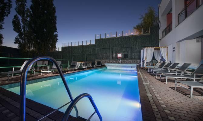 - neobmedzený vstup do bazénového sveta (veľký relaxačný bazén s vírivkou a protiprúdom, tri kľudové sedacie bazény, Kneippov bazén pre nohy, chrlič na chrbát)