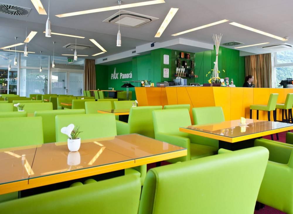 Príjemné posedenie s výhľadom ponúka kaviareň PAX Panoráma na 6. poschodí, s možnosťou stravovania a´la carte.