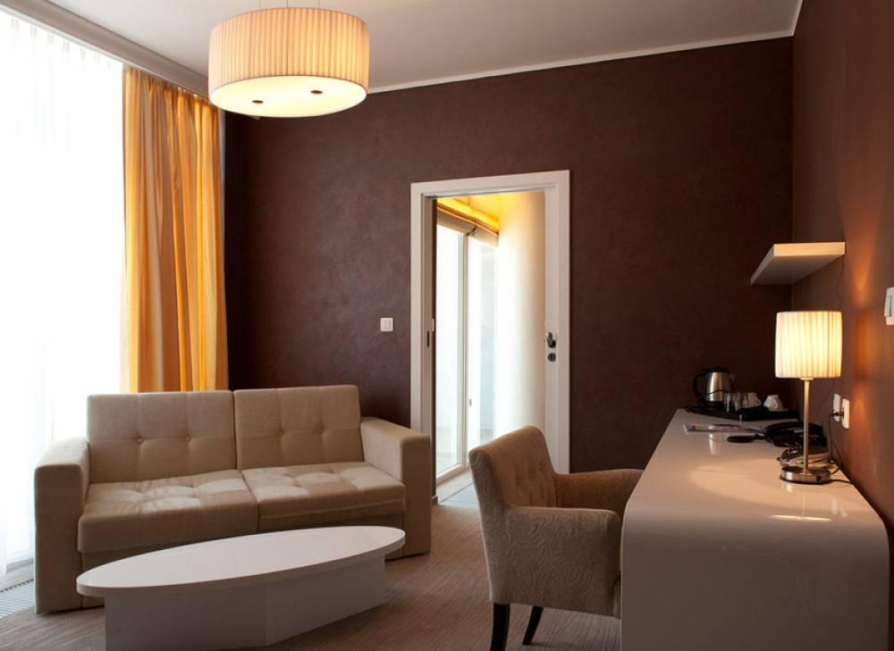 Apartmány de Luxe: TV-sat, Wi-Fi pripojenie, rádio, telefón, chladnička, varná kanvica, trezor, fén, sprcha/vaňa, WC, obývacia a spálňová časť