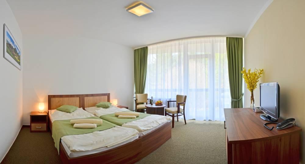 - dieťa 6-12 rokov vrátane: 58 € na noc (plná penziu, 1x liečebná procedúra za noc a 1x vstup do bazénov na noc)